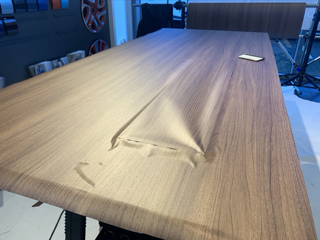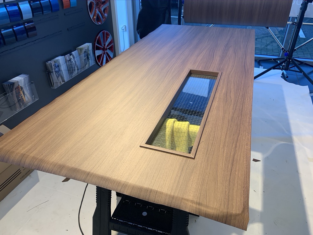 Achieve a premium walnut finish while keeping the dealership fully operational and landfill-free..