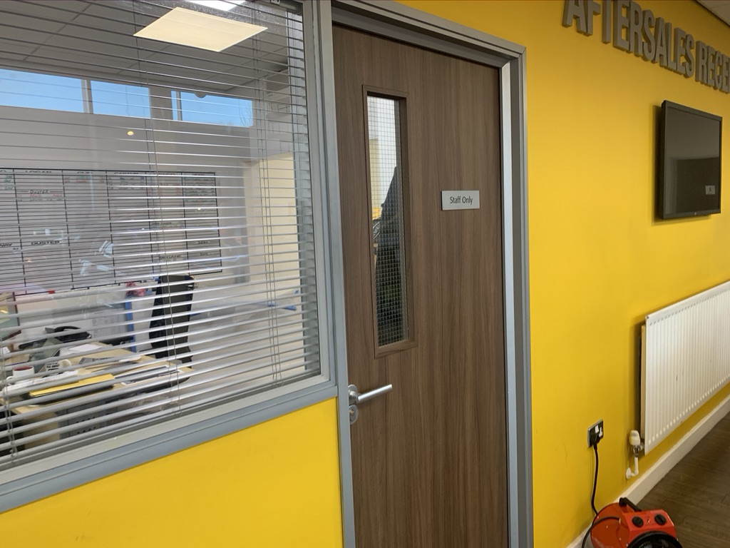 With Renault Milton Keynes updating its internal branding, the team faced a choice: rip out and replace all internal doors or find a smarter way. We offered the latter. By removing, prepping, and resurfacing each door in a durable walnut architectural film, we delivered a full CI update without the mess or materials waste. All doors were back in place the same day—no skips, no downtime, and no compromise.